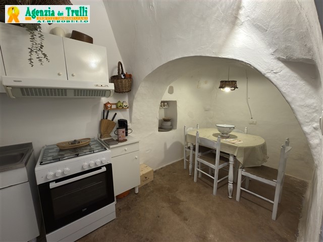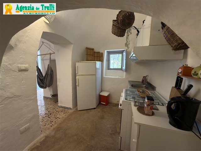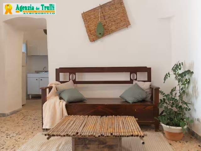 Description:The house, featuring traditional trulli and lamie, preserves the unique character of local architecture. The central trullo creates a warm and inviting living area, complemented by a master bedroom, a kitchen with dining area, a hallway, and a bathroom.