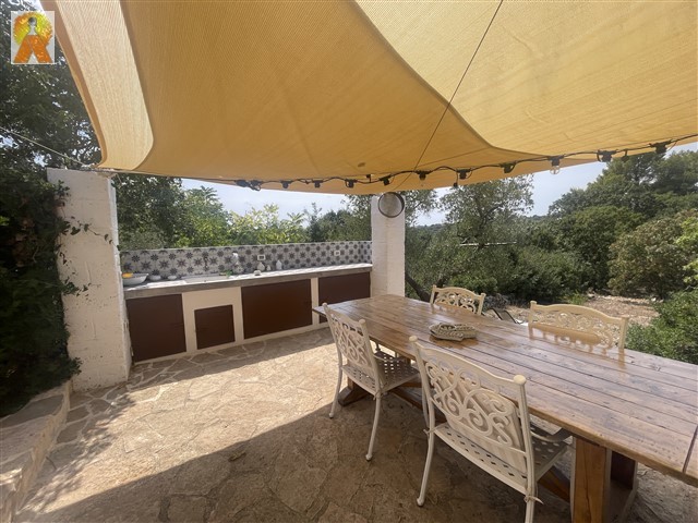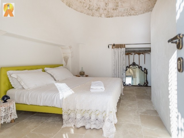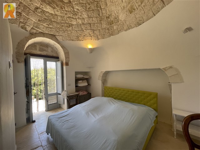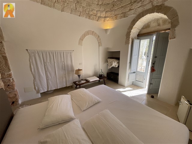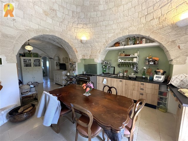 Description:complexe de trulli composé de sept cônes, certains construits de toutes pièces ainsi que d'une lamia avec des voûtes en étoile, le tout entièrement en pierre. La propriété est en partie habitée par les propriétaires et le reste est utilisé comme B&B avec 3 chambres et trois salles de bains. Dans la maison principale il y a un grand séjour avec cuisine ouverte et cheminée, un salon, une chambre et une salle de bain. Les trois autres chambres avec leurs salles de bains respectives ont toutes été créées avec un accès indépendant mais il serait possible de faire communiquer le tout avec la maison principale. La propriété est vendue avec un projet approuvé pour la construction d'une extension d'environ 30 m2 avec des voûtes en berceau à construire à l'arrière. A l'intérieur, le projet prévoit la construction de deux autres chambres, chacune avec une salle de bain privative.