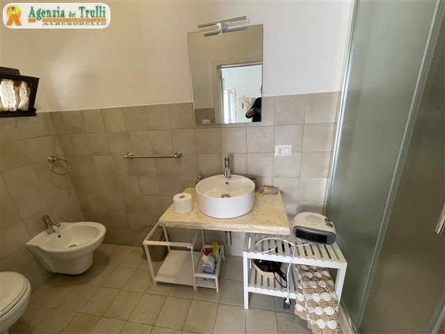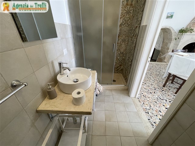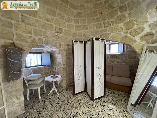 Description:la propriété comprend deux lamias et un trullo. On y accède depuis la lamia qui constitue la pièce à vivre avec cheminée et kitchenette en maçonnerie. De la même lamia on accède également à la salle de bain avec douche et aux deux chambres, dont une dans le trullo avec alcôve qui a été relié à la lamia par trois marches.