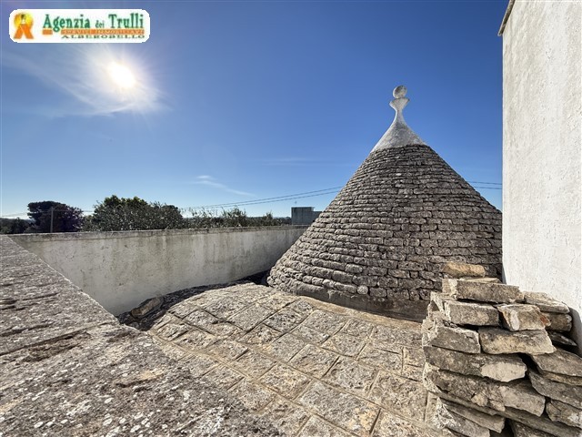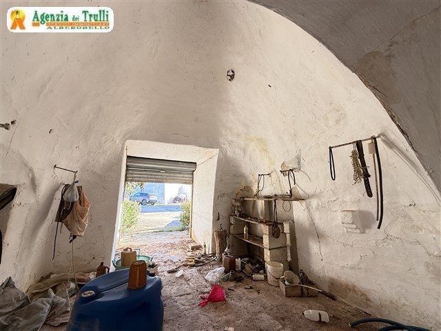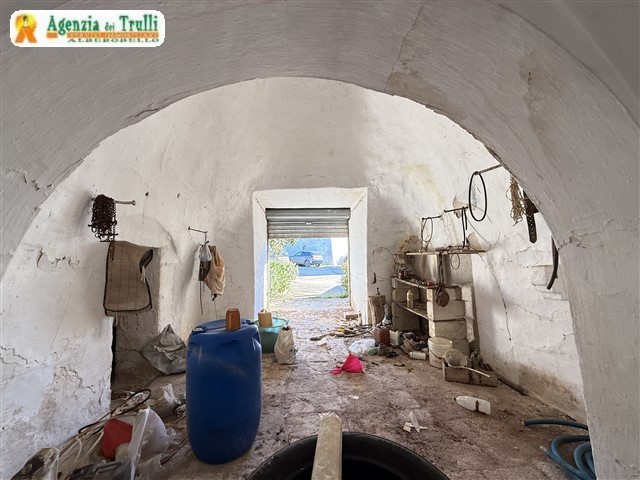 Conditions:La structure de la maison principale et des dépendances, ainsi que les trulli, sont en bon état. Des travaux de restauration sont nécessaires sur les toitures de la pièce abritant le four et de la pièce située à l'étage supérieur de la maison principale. À l'intérieur, une rénovation est requise pour réaliser un projet incluant la construction d'une grande résidence avec séjour, cuisine, trois chambres et deux salles de bains, ainsi que deux logements indépendants, des espaces communs, une cuisine de service, etc.