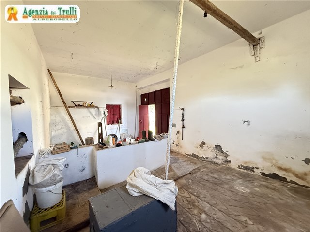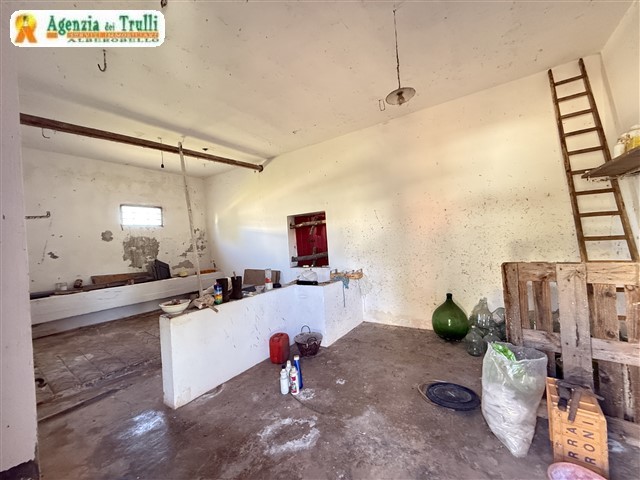 Derrière la maison de maître se trouve une structure indépendante avec une ancienne étable et un trullo. Sur le devant de la maison principale se trouve une grande pièce adjacente au classique four et cheminée.
