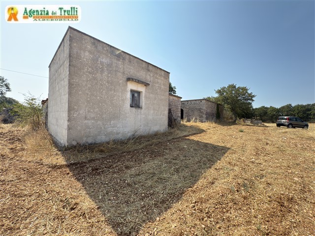 Description:La propriété se développe au cœur d’un vaste terrain et comprend une ancienne habitation en trulli avec trois cônes et deux alcôves, complétée par une série de charmantes dépendances en pierre, adjacentes mais actuellement non communicantes avec le corps principal. À courte distance se trouvent également des étables de construction plus récente, aujourd’hui utilisées comme granges à foin.