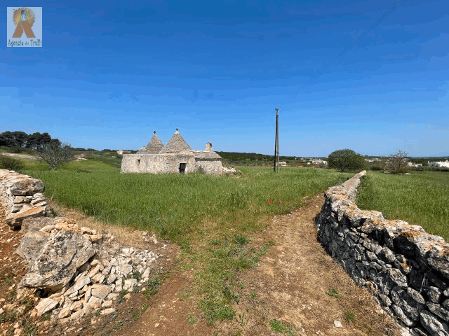 Pretty group of trulli with two stone lamias with a panoramic views.