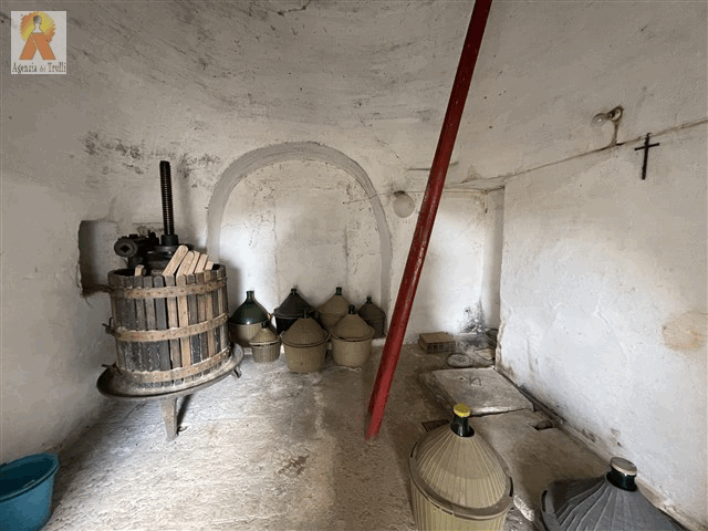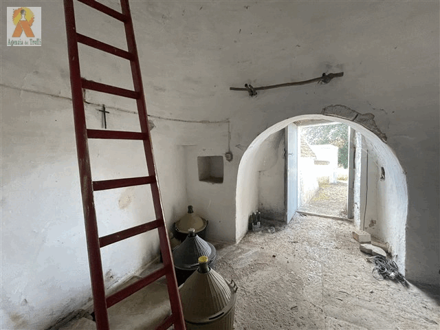 Descrizione:questa antica abitazione è posizionata sul punto più alto del terreno e comprende 4 trulli ed alcune lamie in pietra. La parte a lamia è abitabile e al suo interno vi è una zona giorno con volta a cielo di carrozza, cucina con volta a botte e due camere da letto di cui una all’interno del trullo oltre ad un bagno. Adiacenti, ma non comunicanti con l’abitazione principale, ci sono due trulli con accesso indipendente, un locale deposito anch’esso con accesso indipendente e un ulteriore trullo situato sul retro del corpo principale. L'abitazione principale è facilmente collegabile agli altri ambienti. Infine sul piazzale antistante vi è un ulteriore fabbricato in pietra adibito attualmente come garage.